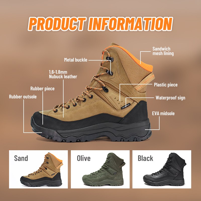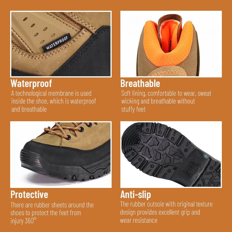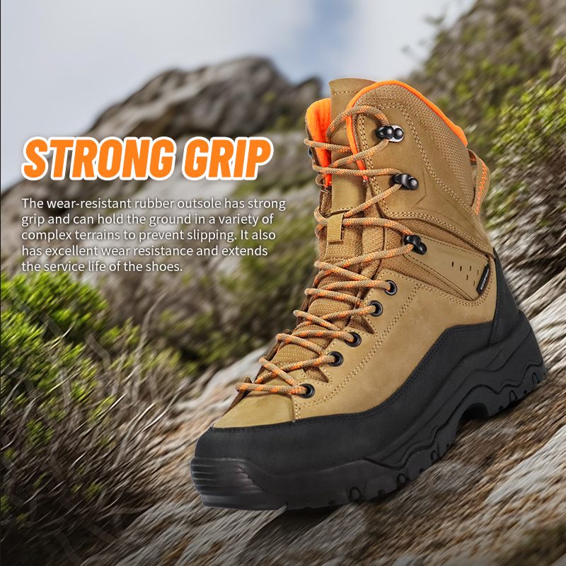 Kasut Kembara Kembara Kalis Air Anti Genggaman Kuat ini tersedia untuk penyesuaian dalam warna, bahan dan butiran, dengan MOQ sebanyak 800 pasang, sesuai untuk kerjasama jenama dan perolehan kumpulan. Dan kasut trekking ini mempunyai kelebihan berikut: