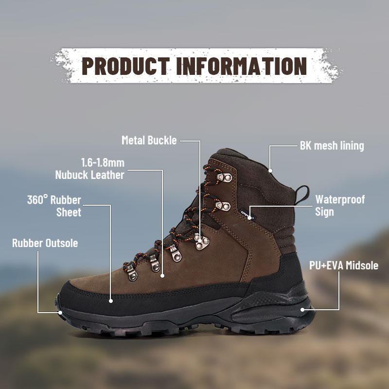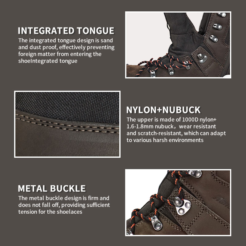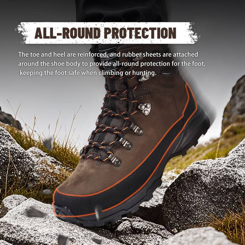 Jari kaki dan tumit diperkukuh, dan kepingan getah dilekatkan di sekeliling badan kasut untuk memberikan perlindungan menyeluruh untuk kaki, memastikan kaki selamat semasa mendaki atau memburu.