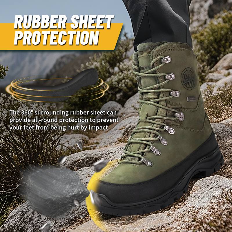 Kasut Memburu Thinsulate Penebat Kalis Air ini tersedia untuk penyesuaian dalam warna, bahan dan butiran, dengan MOQ sebanyak 800 pasang, sesuai untuk kerjasama jenama dan perolehan kumpulan. Dan kasut trekking ini mempunyai kelebihan berikut: